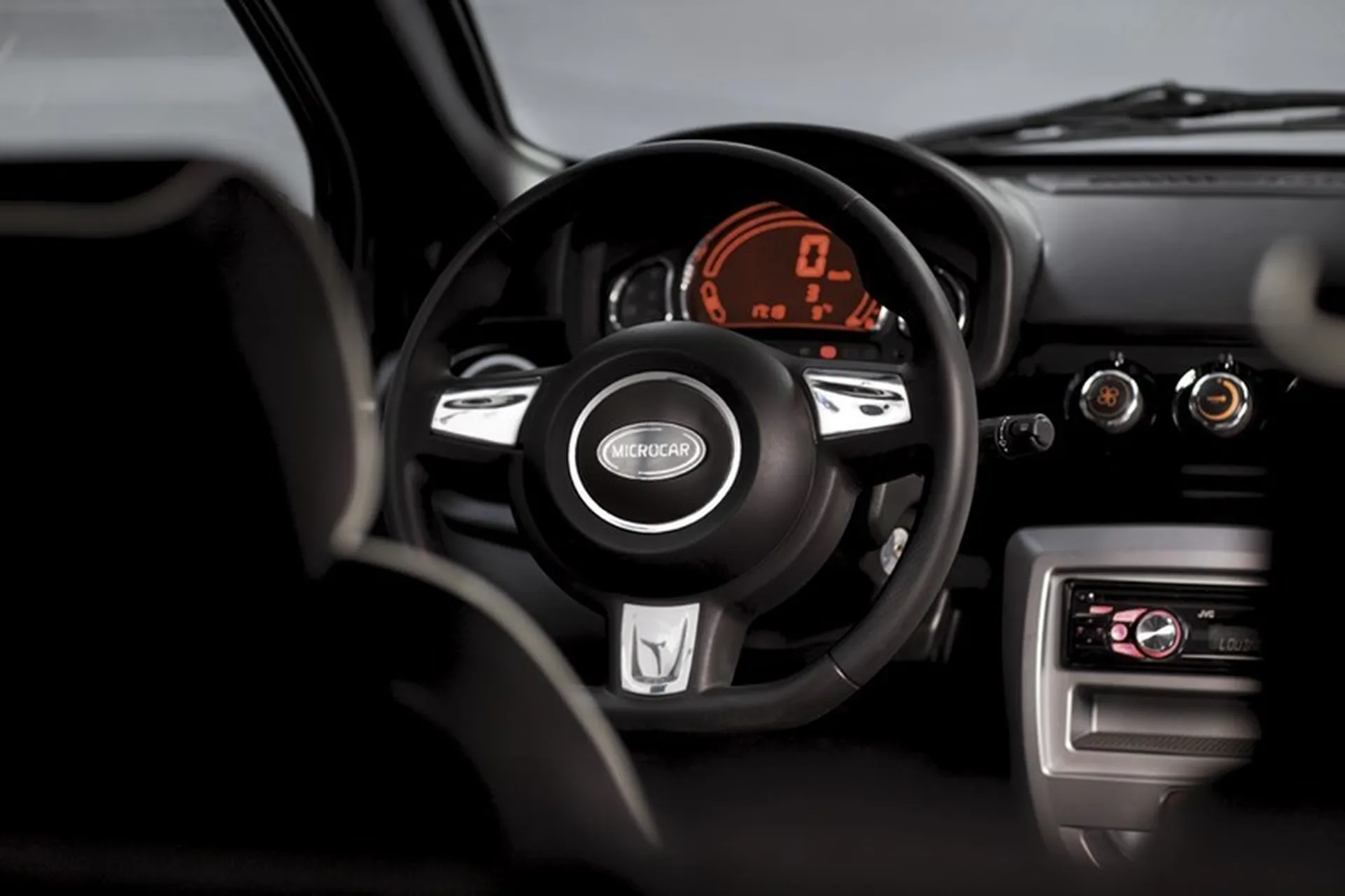 A l'intérieur; la Microcar M8 Spirit est très chic et fonctionnelle ! Ordinateur de bord, vitres electriques, siège noir et blanc, volant sport 3 branches, vous n'aurez plus qu'à allumer son autoradio CD MP3 et elle vous accompagnera dans tout vos déplacements.